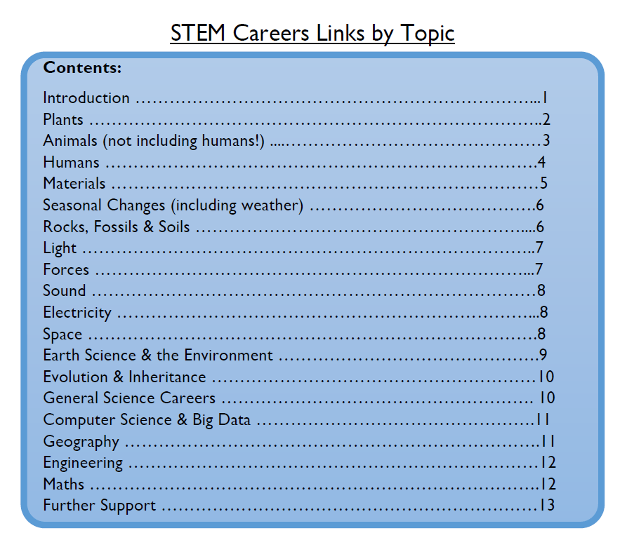 This list was created to help develop pupils’ science capital by highlighting the range of STEM careers available to them. It is intended for use by teachers to select careers linked to their current science topic and discuss these with pupils, perhaps even having them take on the roles of these scientists in lessons. You could, for example, challenge students to be meteorologists in their seasons lessons, or horticulturalists in their lessons on plants. It would also be helpful to add the names for these different types of scientists to your vocabulary lists, displays and knowledge organisers.